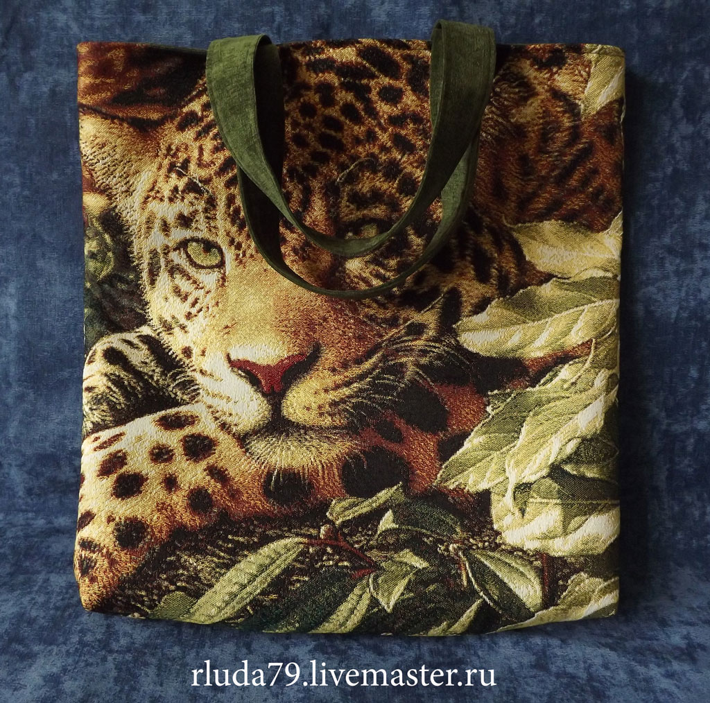 Сумка выполнена из гобелена. Задняя сторона из ткани Микровельвет. Внутри подклад с тремя карманами, один на молнии. Сзади тоже есть кармашек на молнии. Сумка объемная и вместительная, закрывается на молнию. Носится на плече.