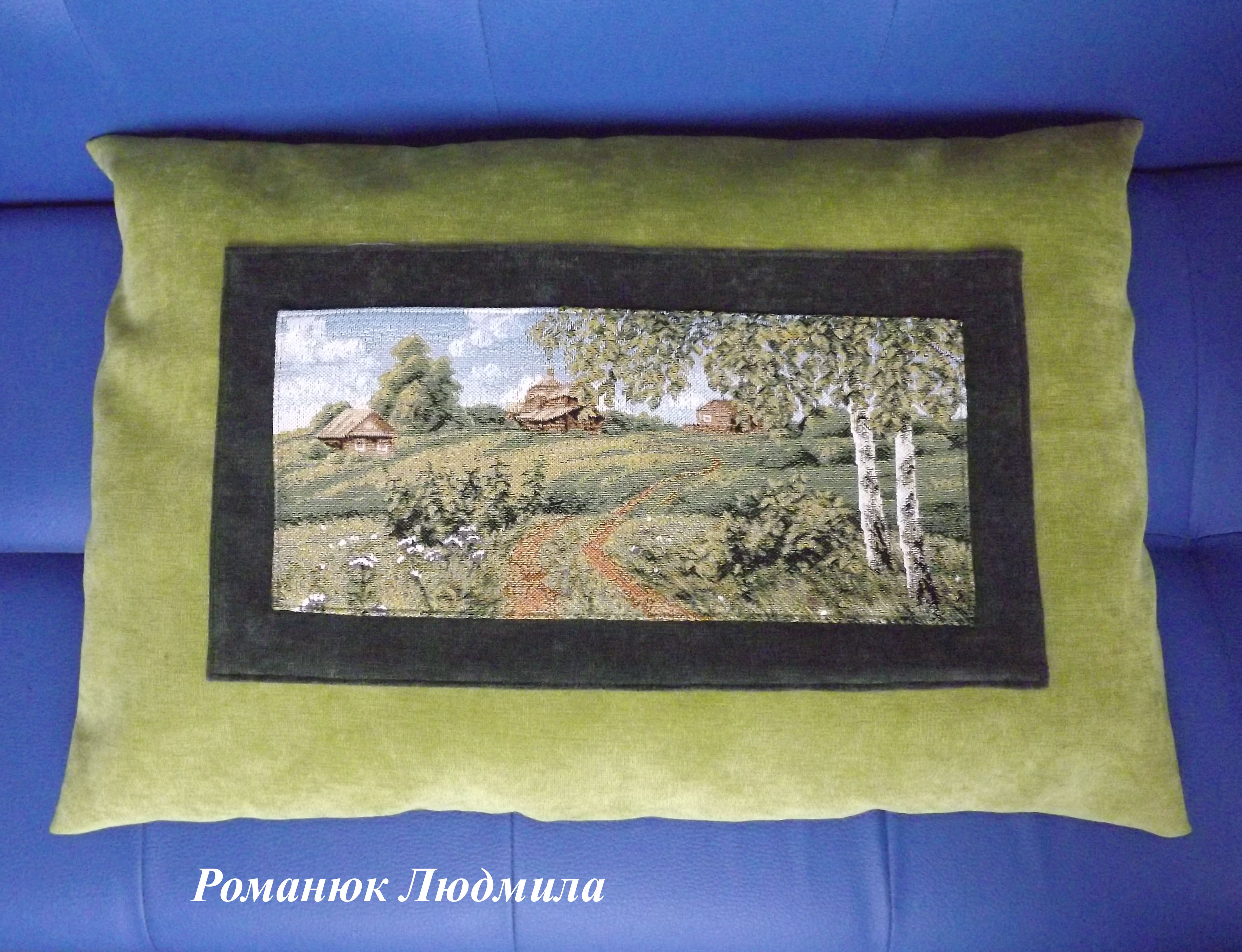 Выполнена из мебельной ткани и гобелена. Закрывается на молнию.