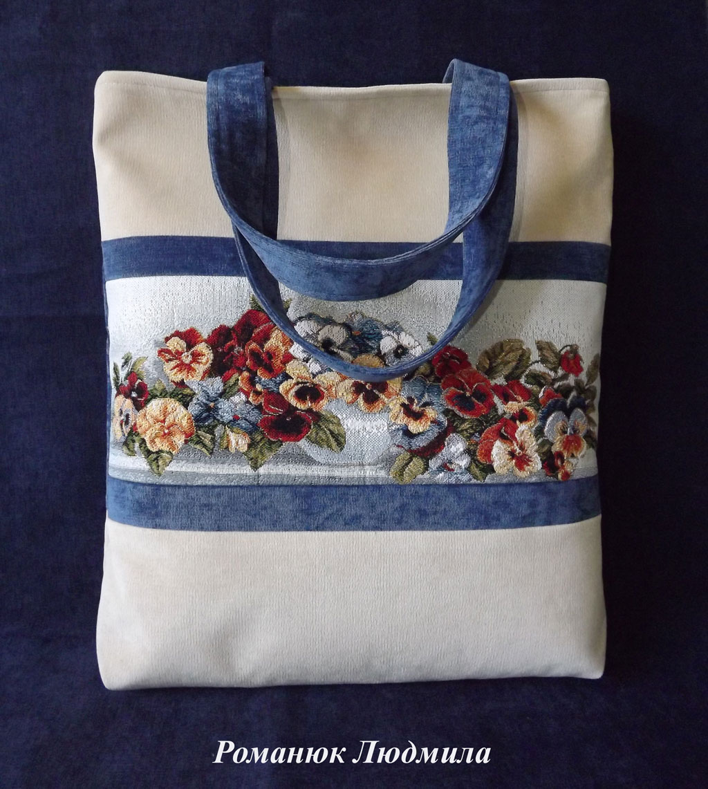 Практичная и удобная сумка универсального покроя, с которой можно пойти на работу или на учебу. Станет прекрасным подарком на день рождения, 8 марта и т.д. Выполнена из гобелена и микровельвета. Внутри подклад с двумя кармашками, один на молнии. Сзади тоже есть карман. Сумка объемная и вместительная, закрывается на молнию. Носится на плече.