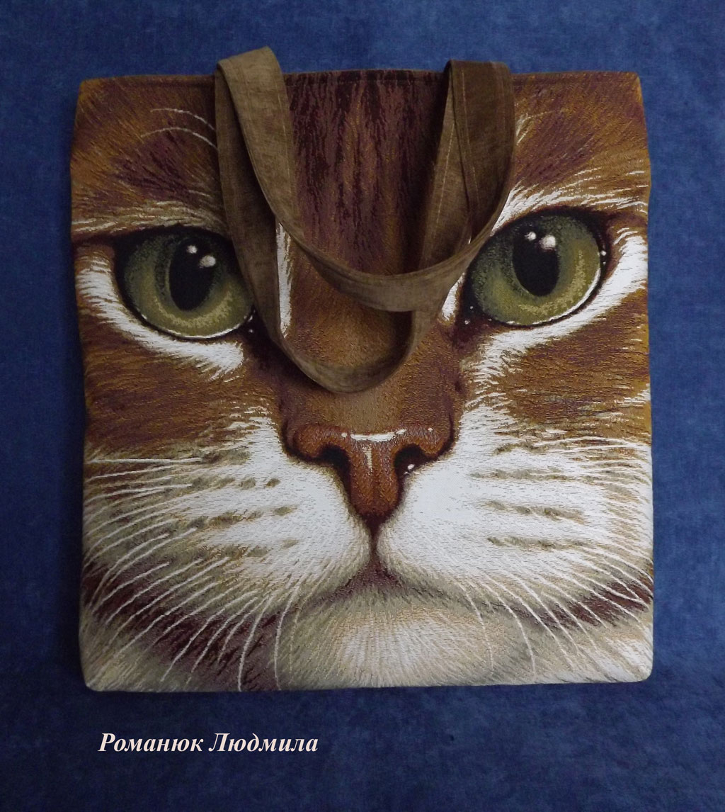 Выполнена из гобелена. Задняя сторона из ткани Микровельвет. Внутри подклад с двумя кармашками, один на молнии. Сзади тоже есть карман. Сумка объемная и вместительная, закрывается на молнию. Носится на плече.