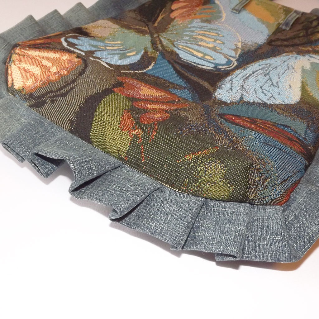 Внешняя ширина сумки 40 см, длина 44 см, ручки 52 см. Внутренние размеры сумочки 30х40 см.
