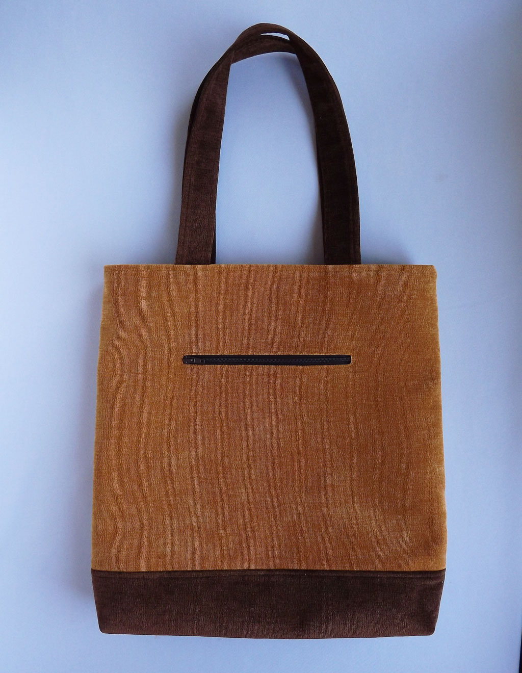 Внутри сумочки есть подклад темно-коричневого цвета, приятный на ощупь, с двумя карманами, один на молнии. На обратной стороне сумки есть врезной кармашек на молнии. Сумка большая и вместительная, закрывается на молнию, носится на плече.