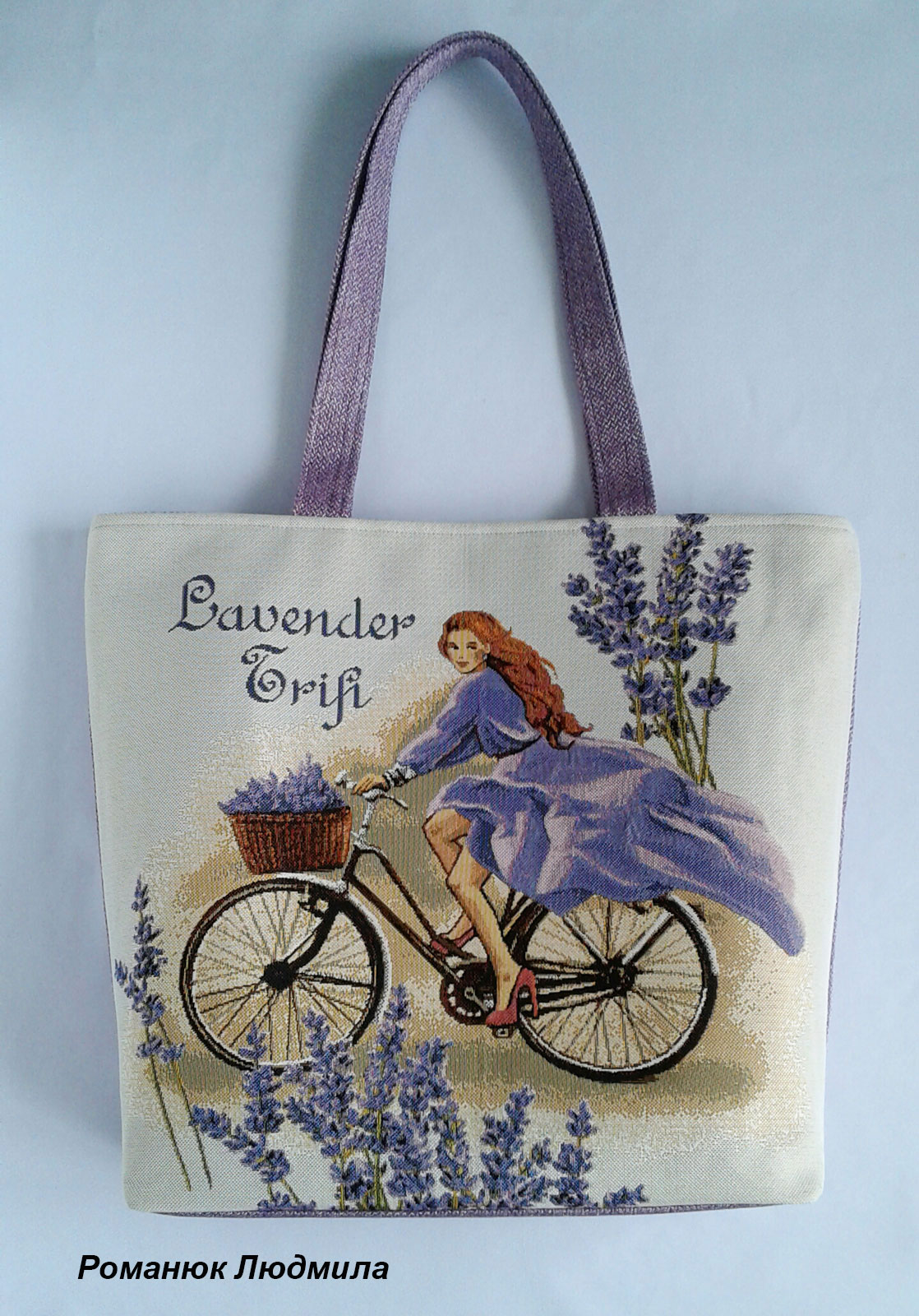 Размер: Ширина сумки 42 см, глубина 36 см, глубина дна 10 см. Длина ручек 57 см