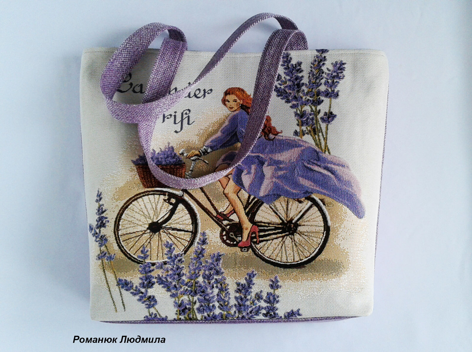 Размер: Ширина сумки 42 см, глубина 36 см, глубина дна 10 см. Длина ручек 57 см.