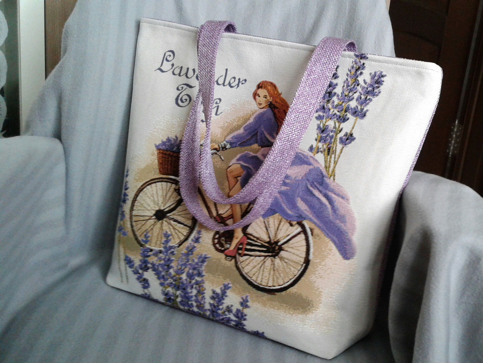 Размер: Ширина сумки 42 см, глубина 36 см, глубина дна 10 см. Длина ручек 57 см