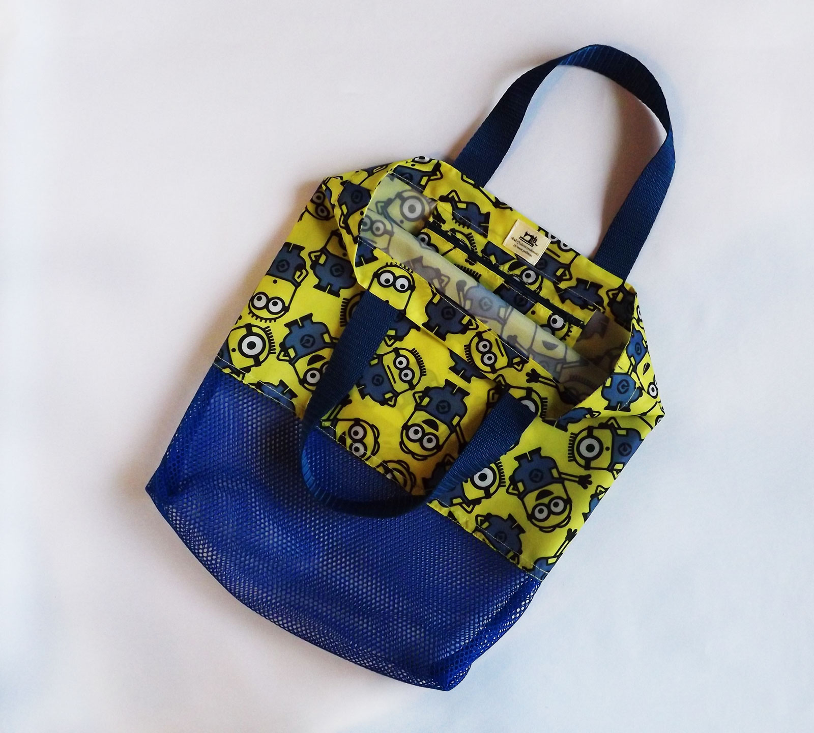 Детские сумочки для игрушек в песочнице или для пляжа. Выполнены из непромокаемой ткани - плащевки. Внутри есть карман на молнии. Рюкзачная сетка помогает избавляться от песка скапливающегося на дне, одновременно проветривает сумку.