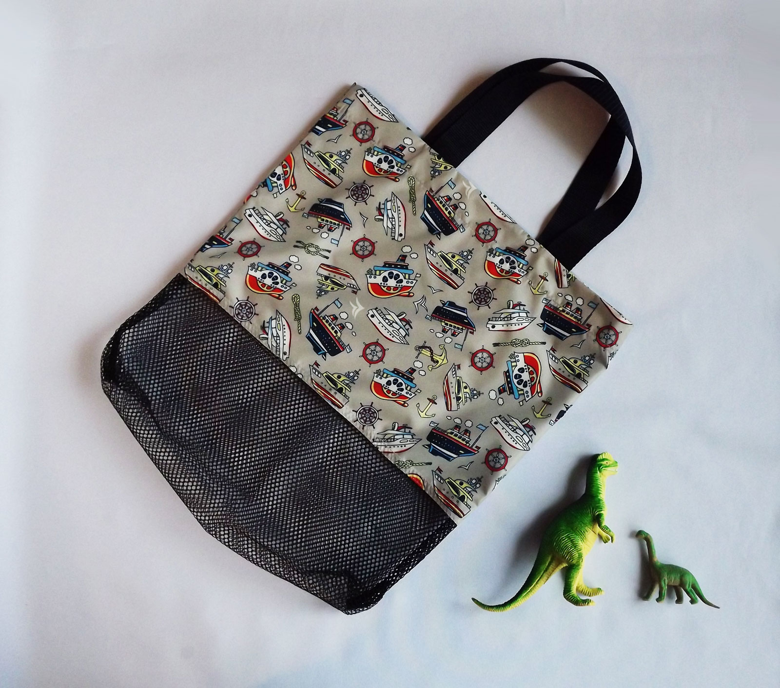 Детские сумочки для игрушек в песочнице или для пляжа. Выполнены из непромокаемой ткани - плащевки. Внутри есть карман на молнии. Рюкзачная сетка помогает избавляться от песка скапливающегося на дне, одновременно проветривает сумку.