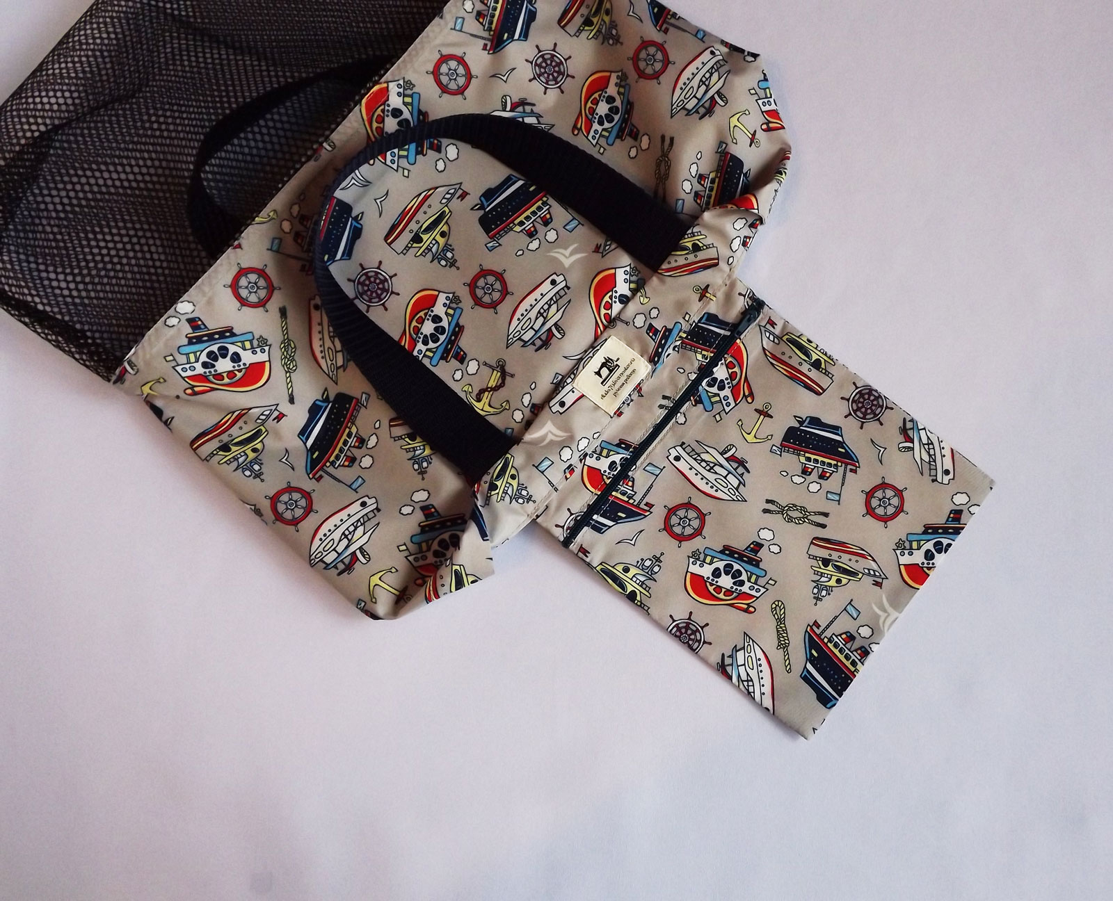 Детские сумочки для игрушек в песочнице или для пляжа. Выполнены из непромокаемой ткани - плащевки. Внутри есть карман на молнии. Рюкзачная сетка помогает избавляться от песка скапливающегося на дне, одновременно проветривает сумку.