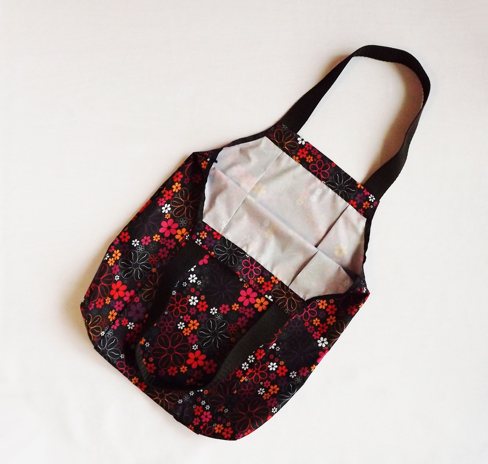Практичная и удобная женская сумка для покупки продуктов, можно носить на плече. На первый взгляд небольшая, но очень вместительная, благодаря складкам с двух сторон. Легкая, вместительная, без подклада, ручки из стропы.