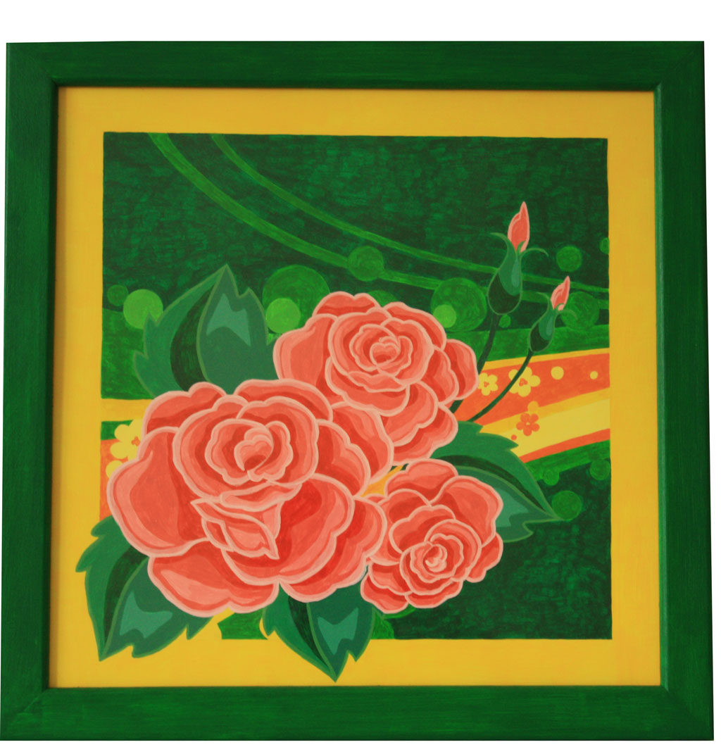 Акриловые краски, картон, стекло, деревянная рама.